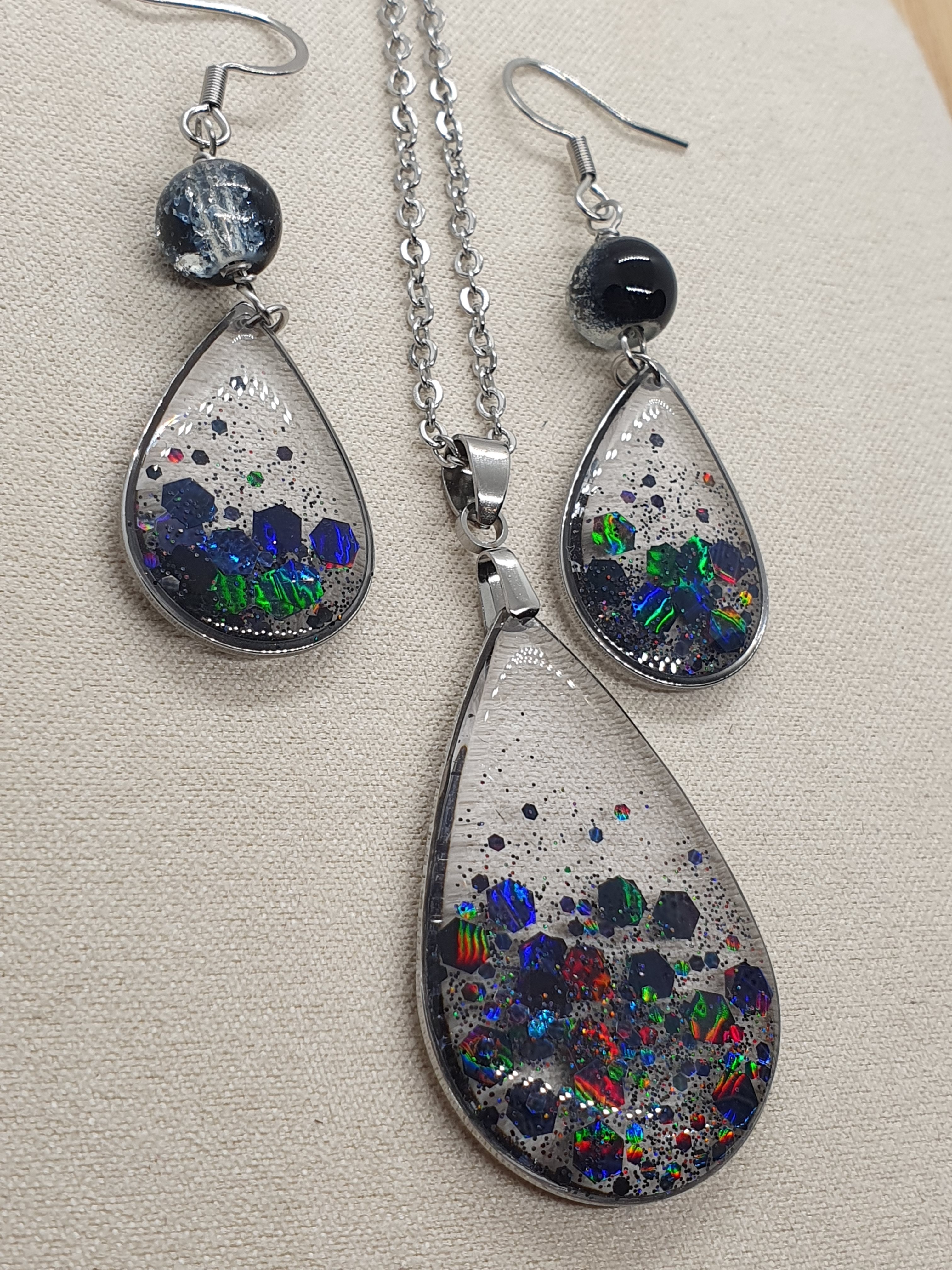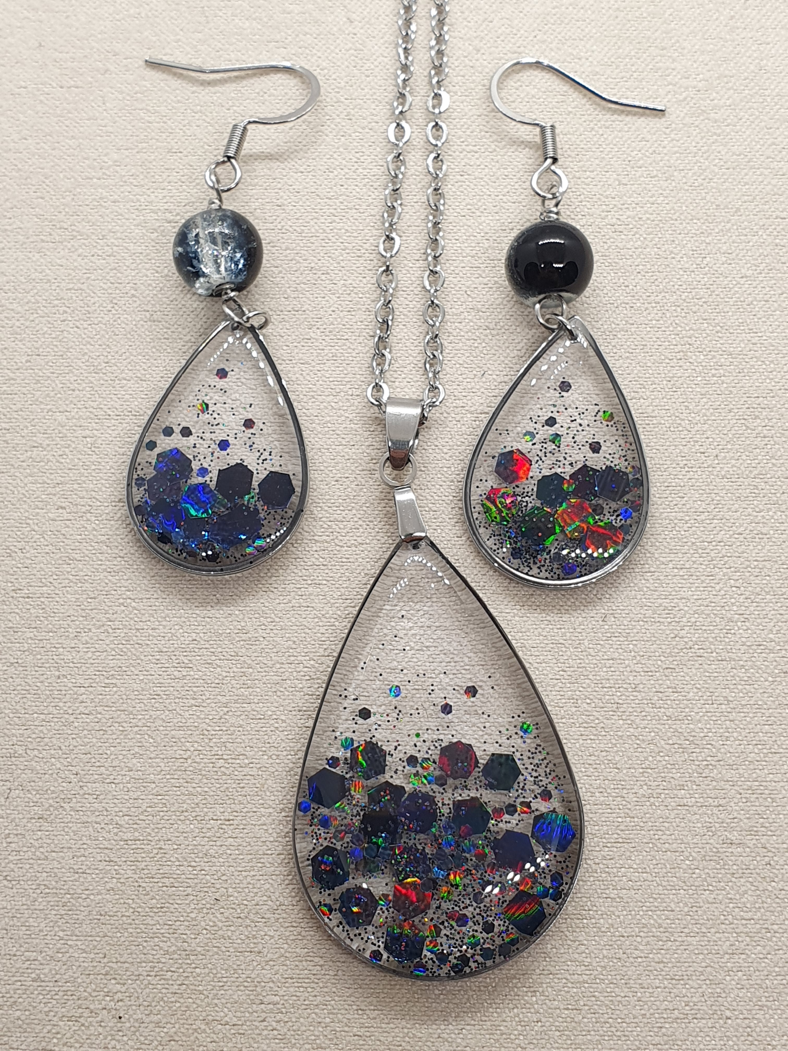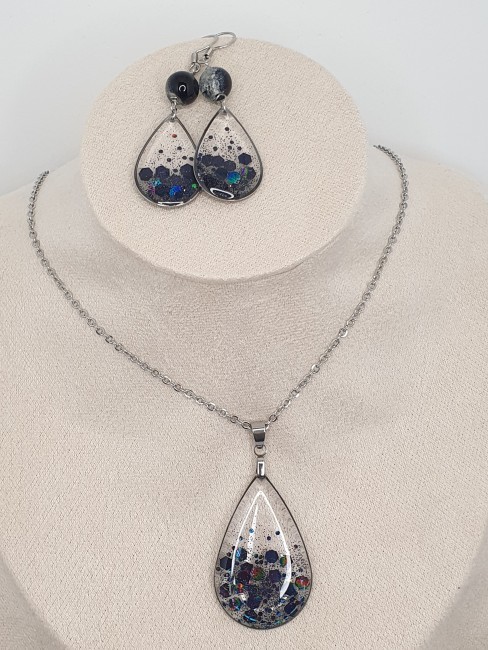 Plongez dans l'univers de la nuit avec cette parure goutte d'eau.