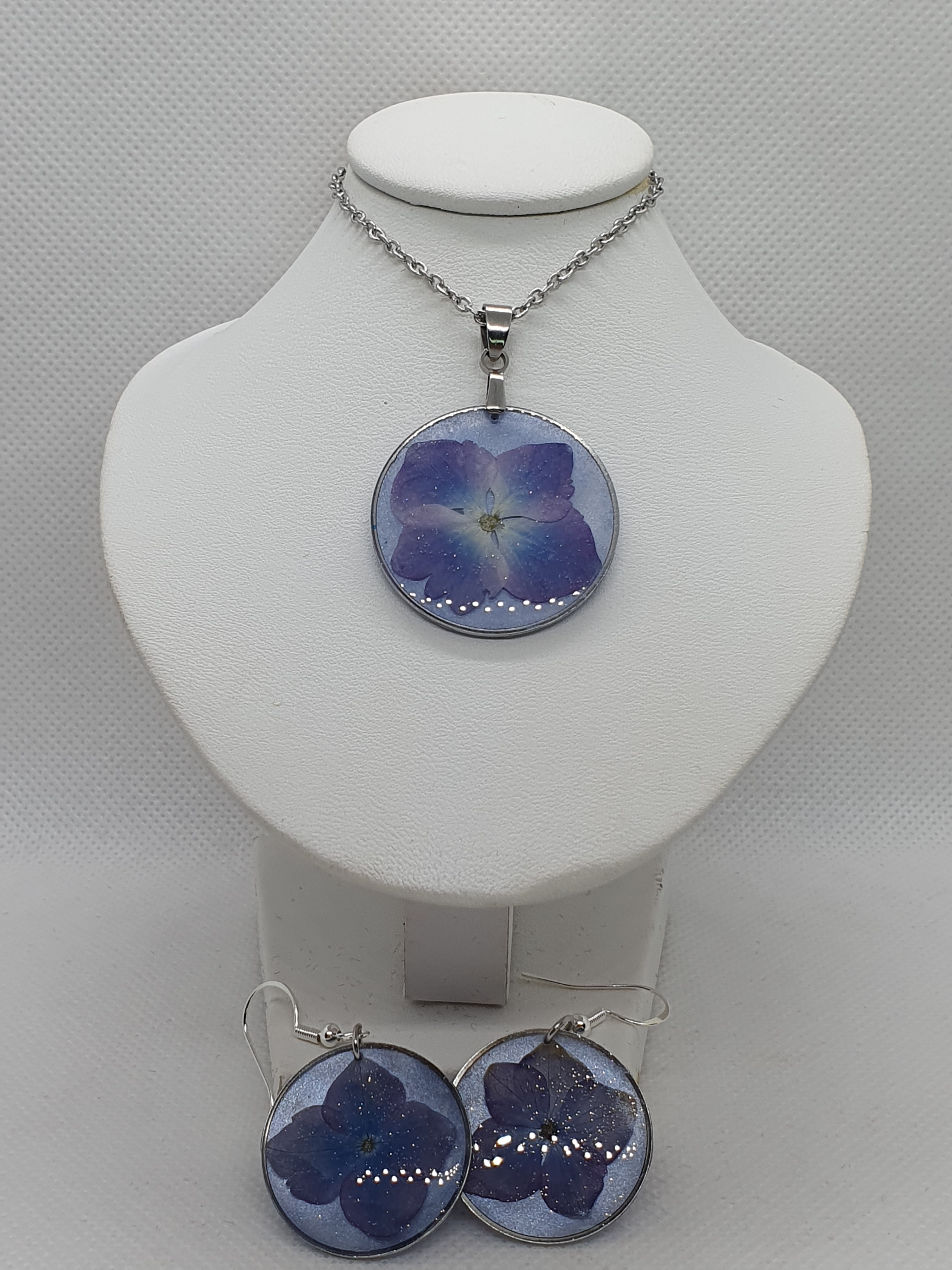Les hortensias bleutés, parsemés de paillettes scintillantes, créent un effet de ciel étoilé envoûtant.