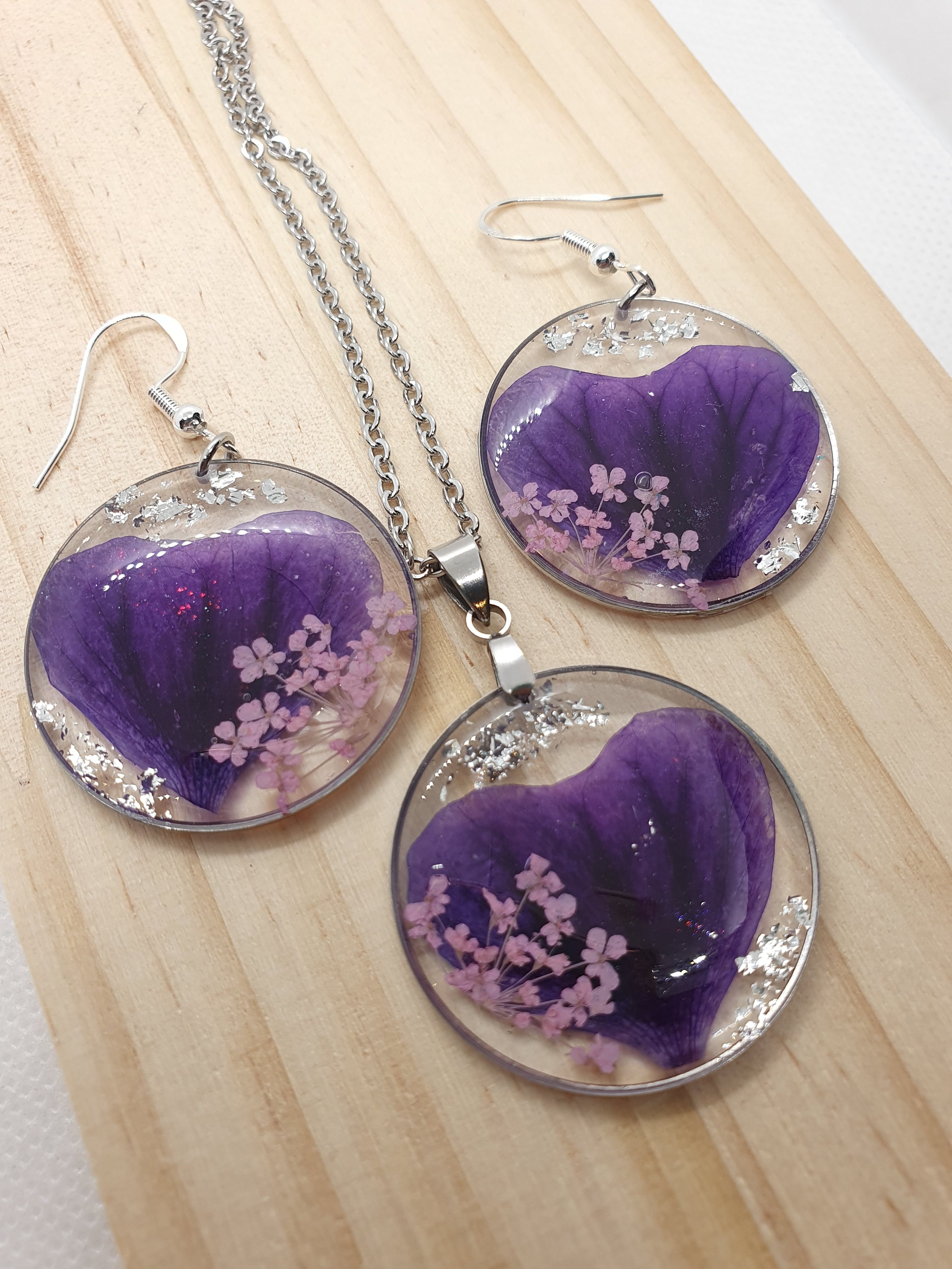 Laissez-vous séduire par cette parure en résine, où la nature se fait bijou.
