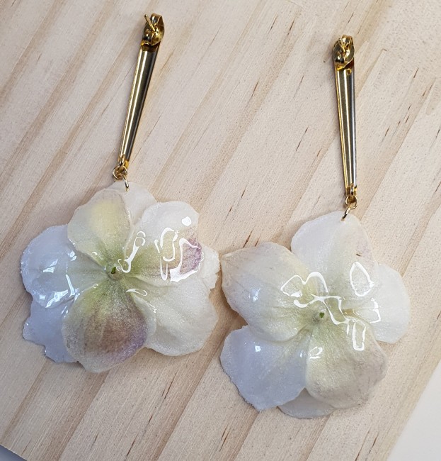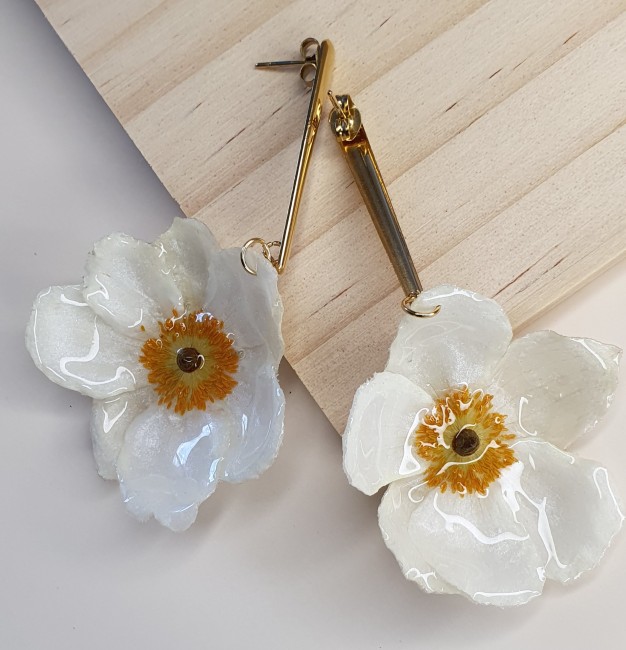 Transformez votre style avec nos boucles d’oreilles exceptionnelles, mettant en avant de véritables fleurs d’anémones du Japon, délicatement préservées dans une résine nacrée.
