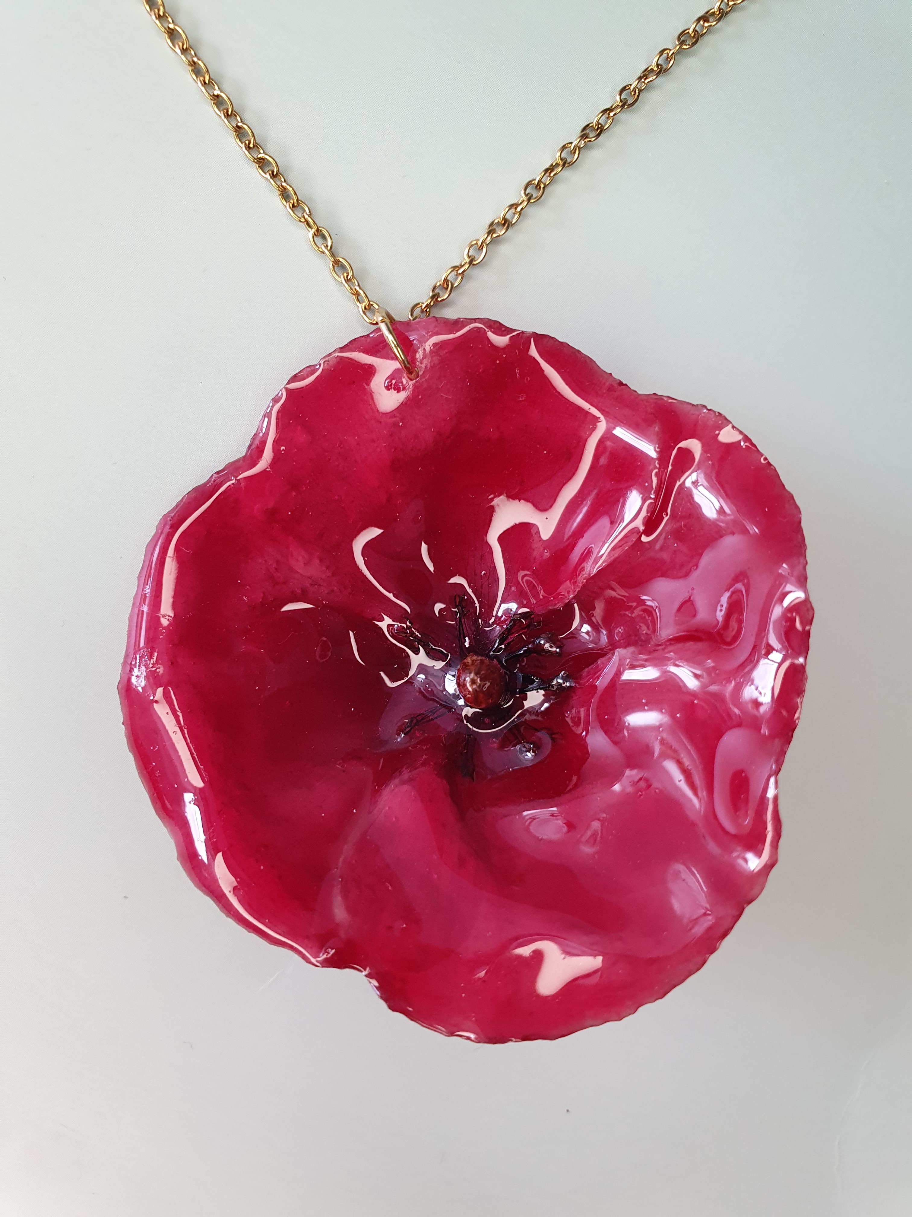Pendentif Coquelicot – Fleur naturelle figée dans la résine