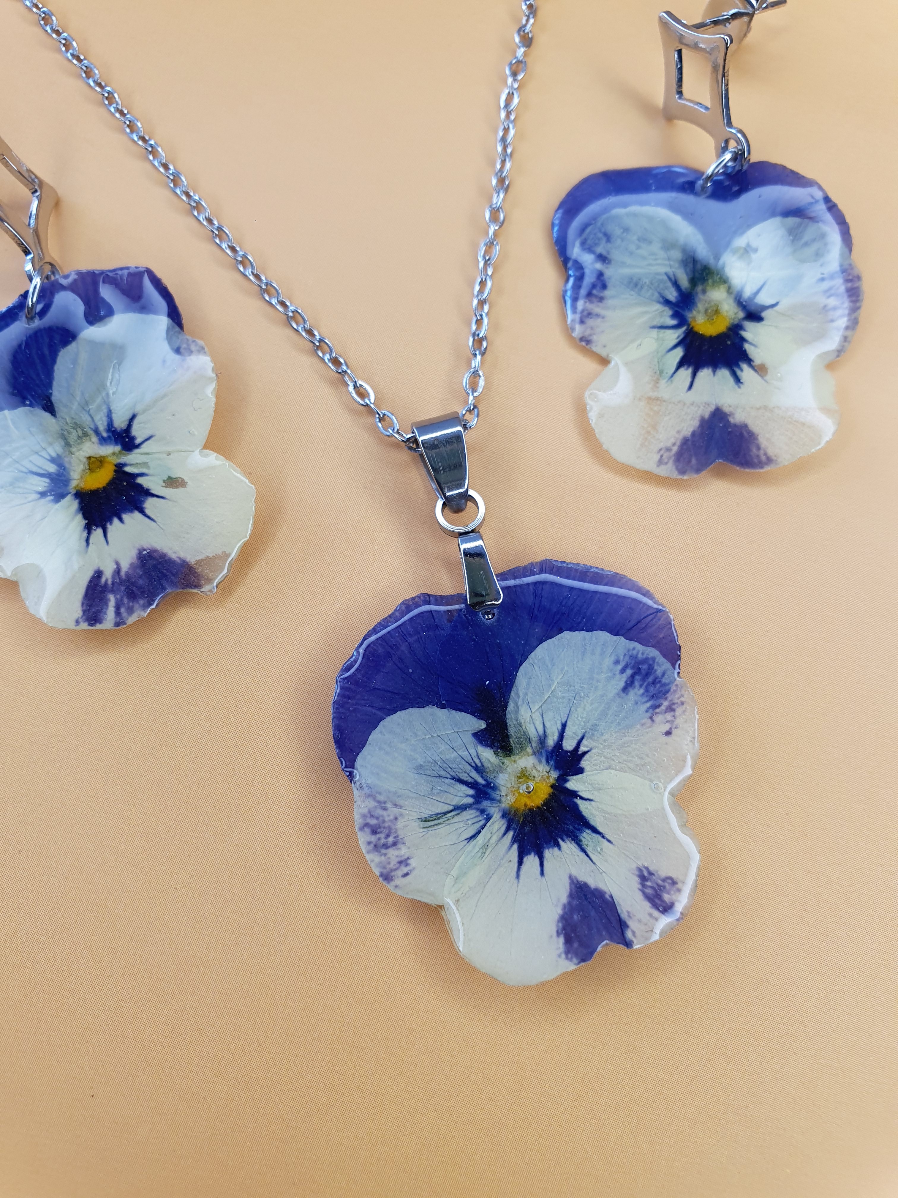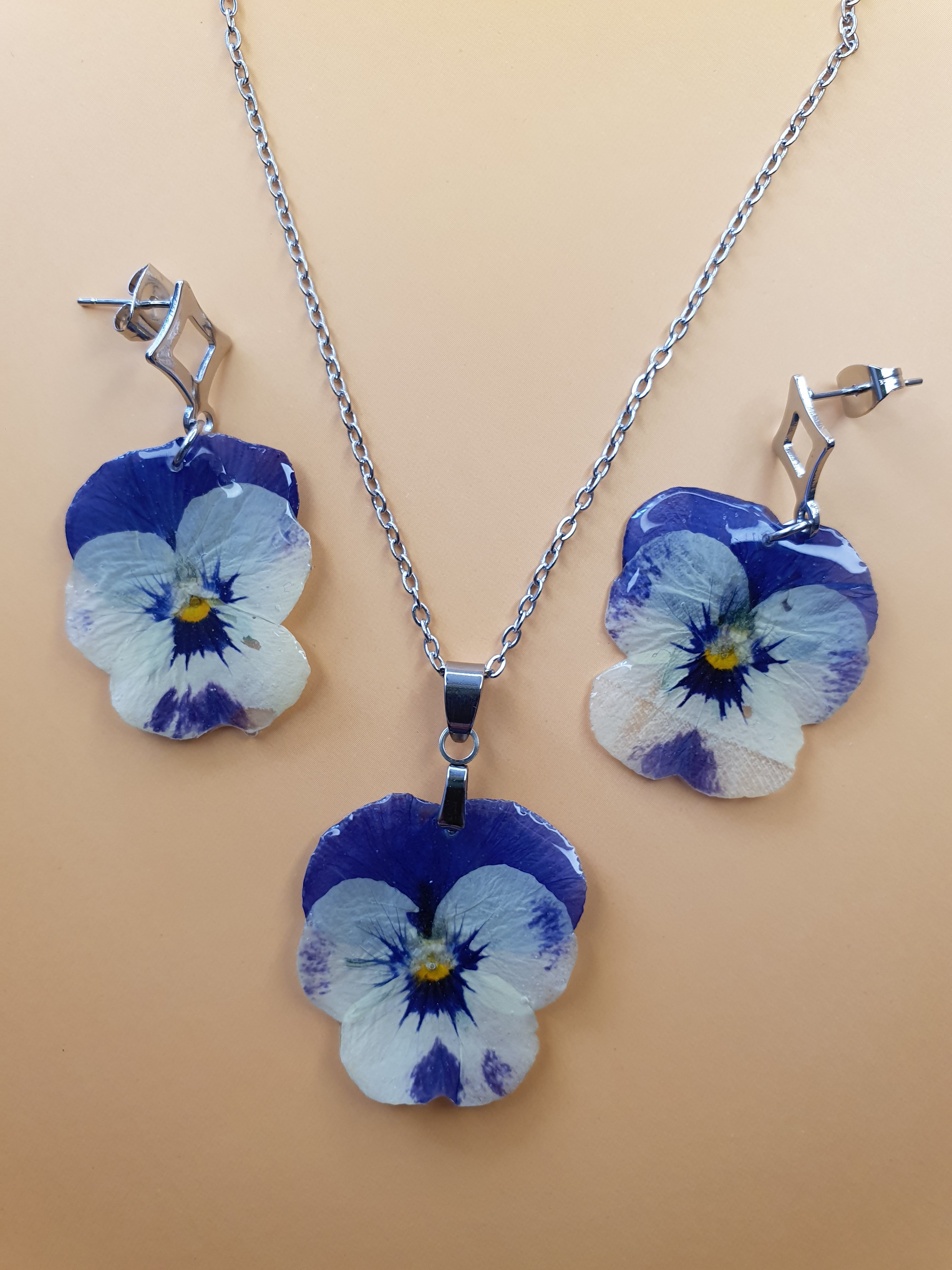 ? Nouveauté en boutique : Parure de bijoux en véritables fleurs de Pensée ?