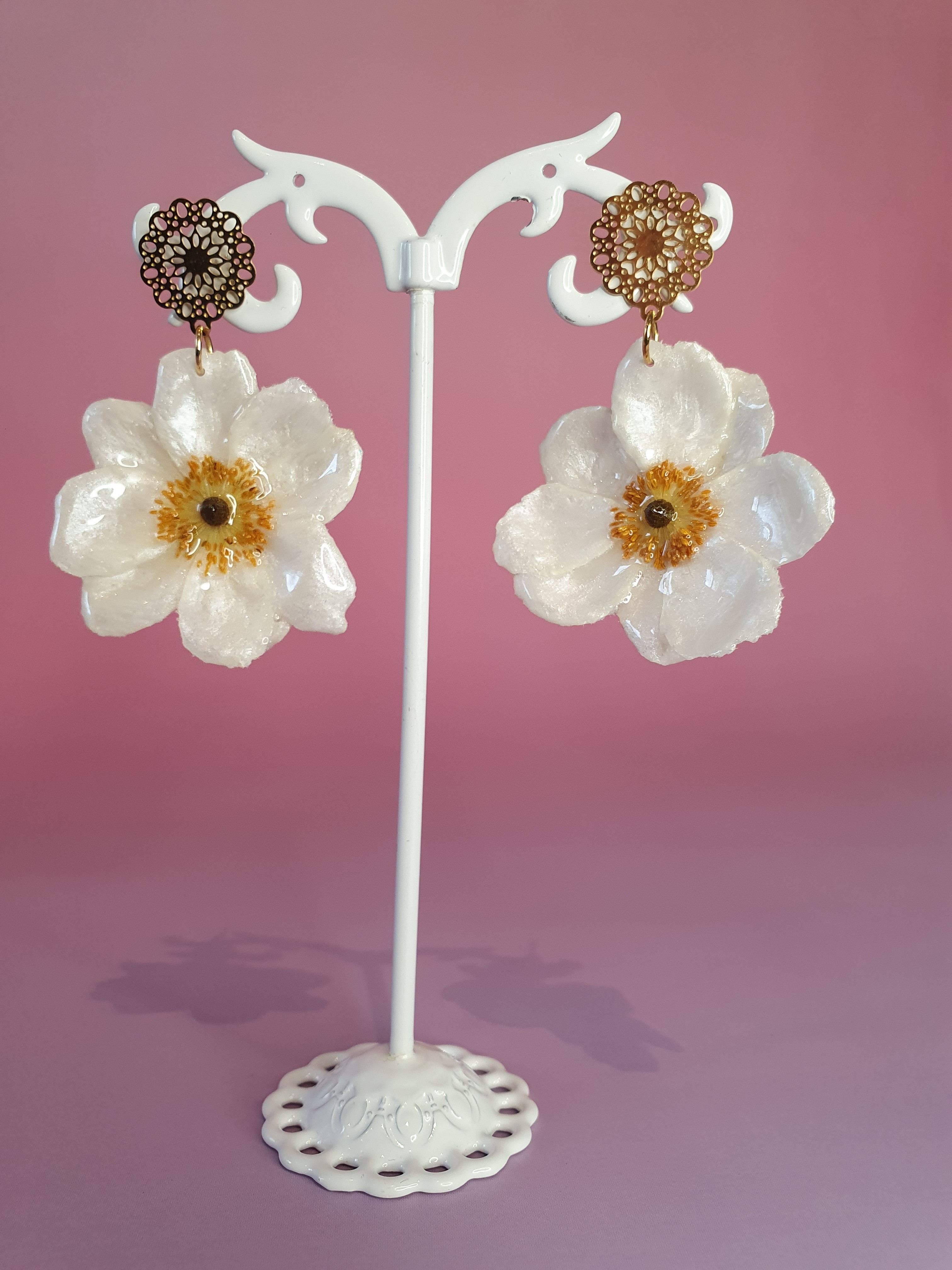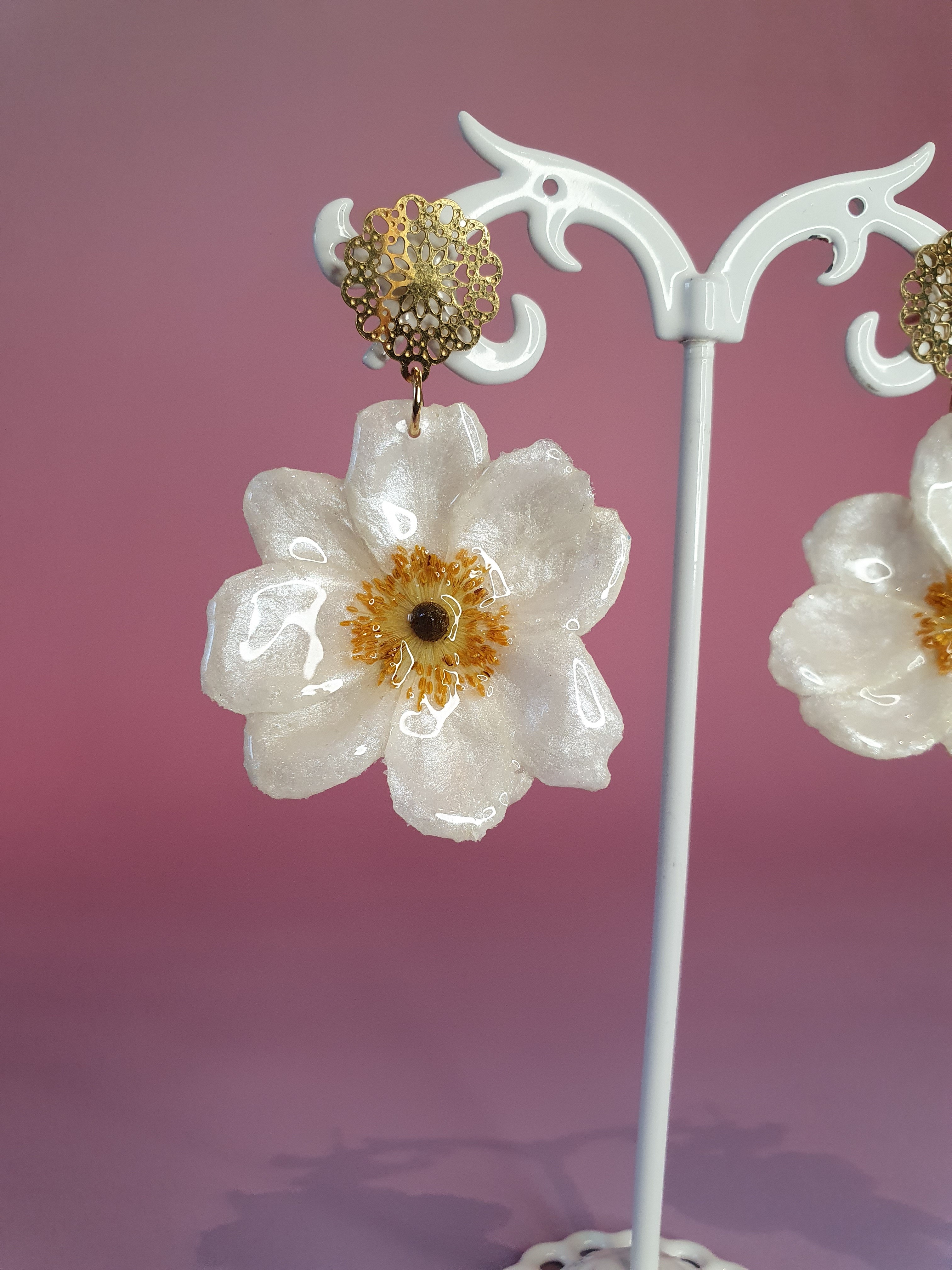 ✨ Boucles d’oreilles – Anémone du Japon Blanche (Mini)