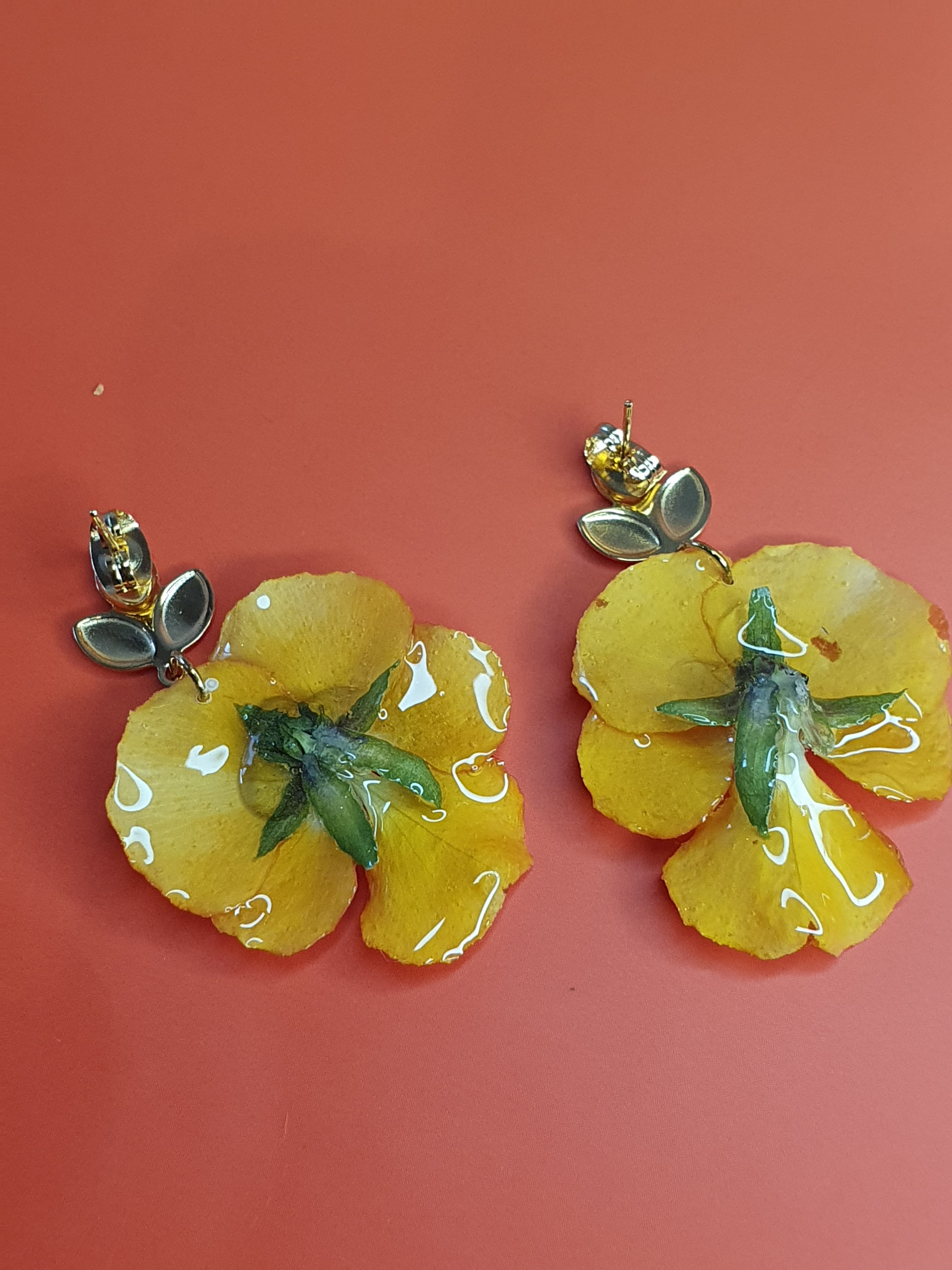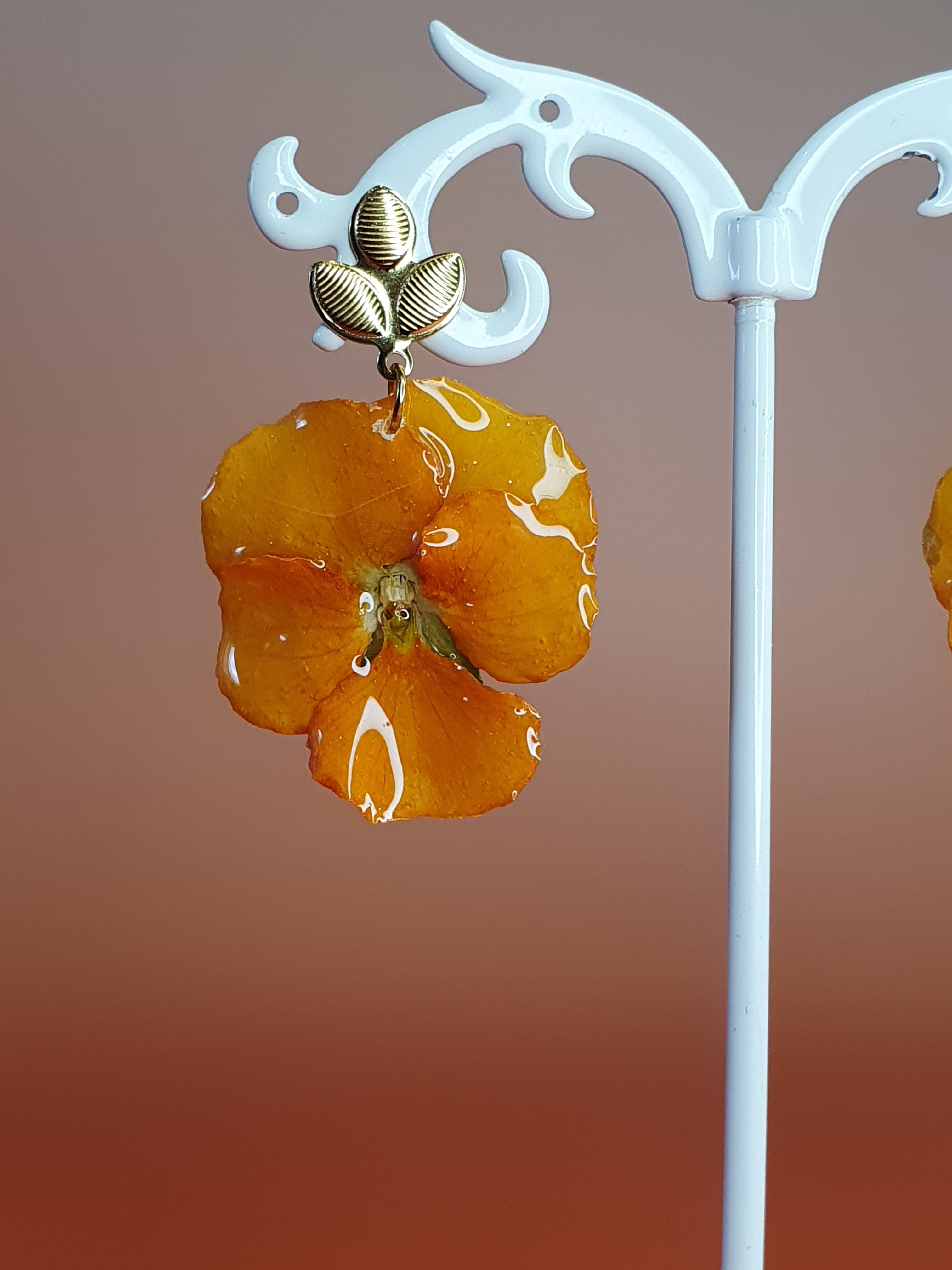 ✨ Boucles d’oreilles – Fleurs de Pensée Orange Naturelles