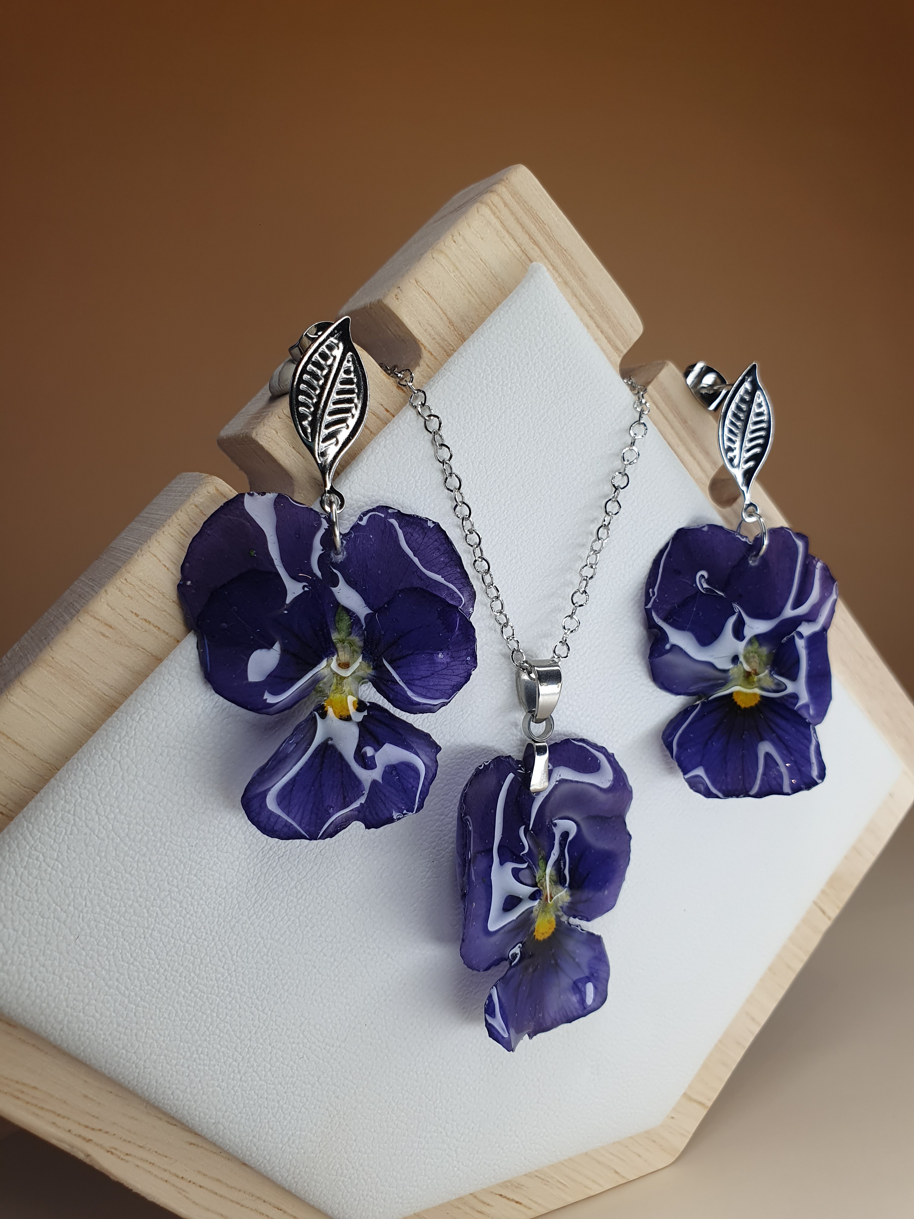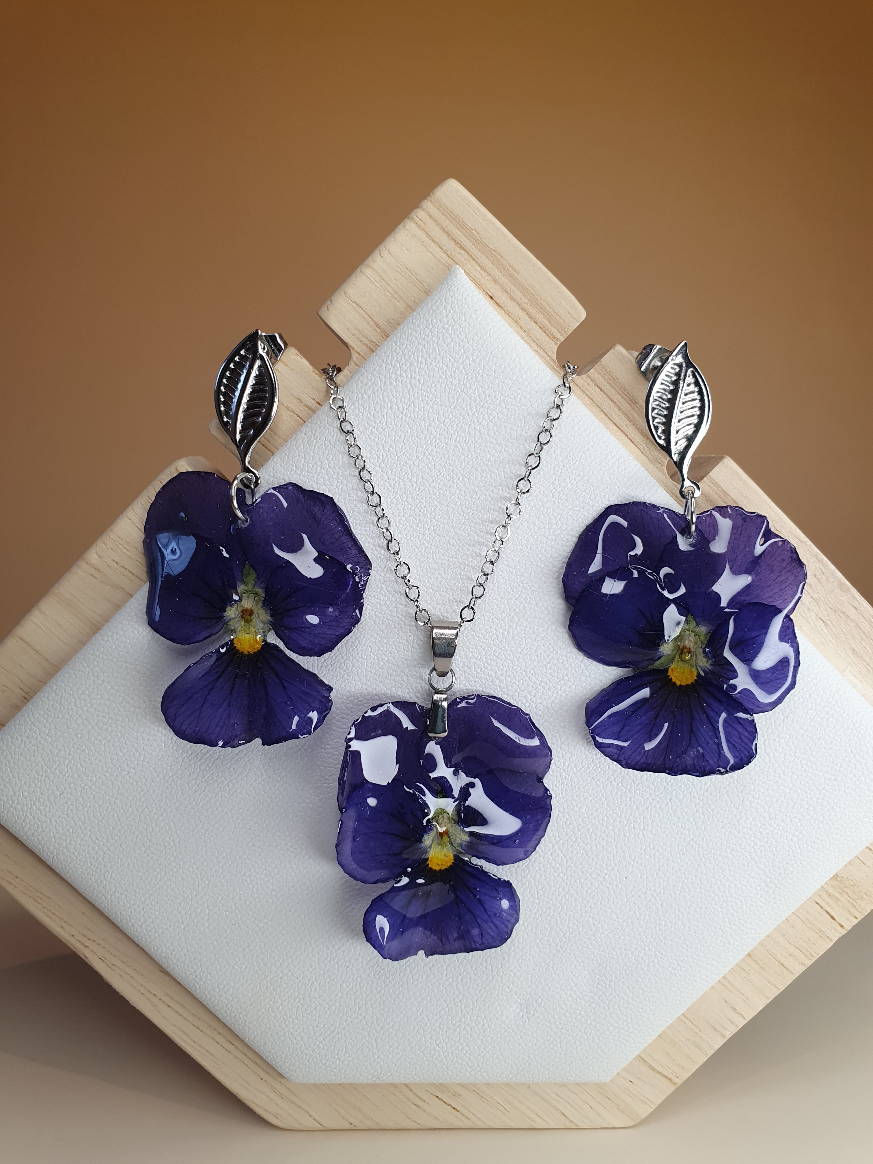 ✨ Parure – Fleurs de Pensée Violettes au Cœur Jaune