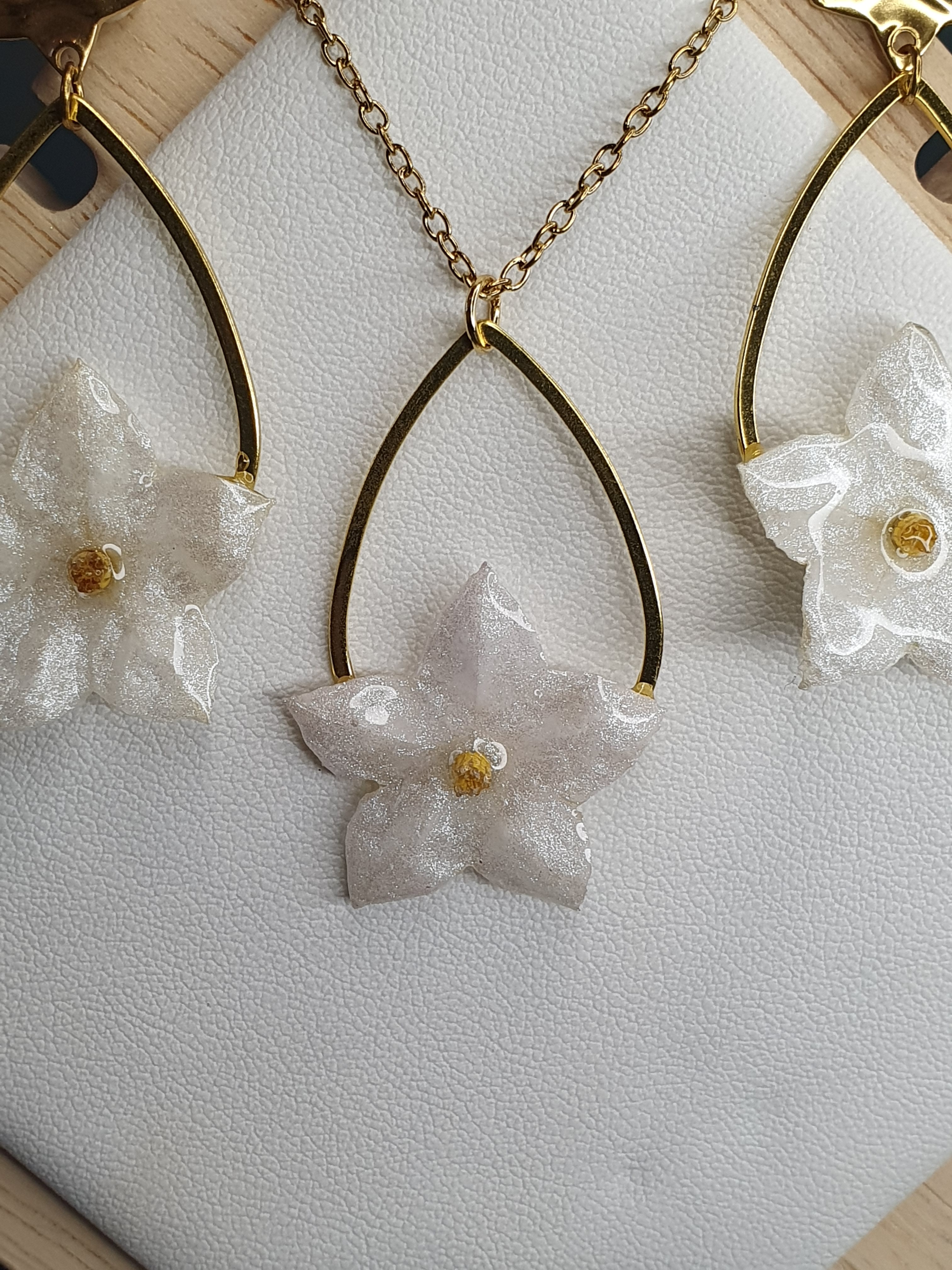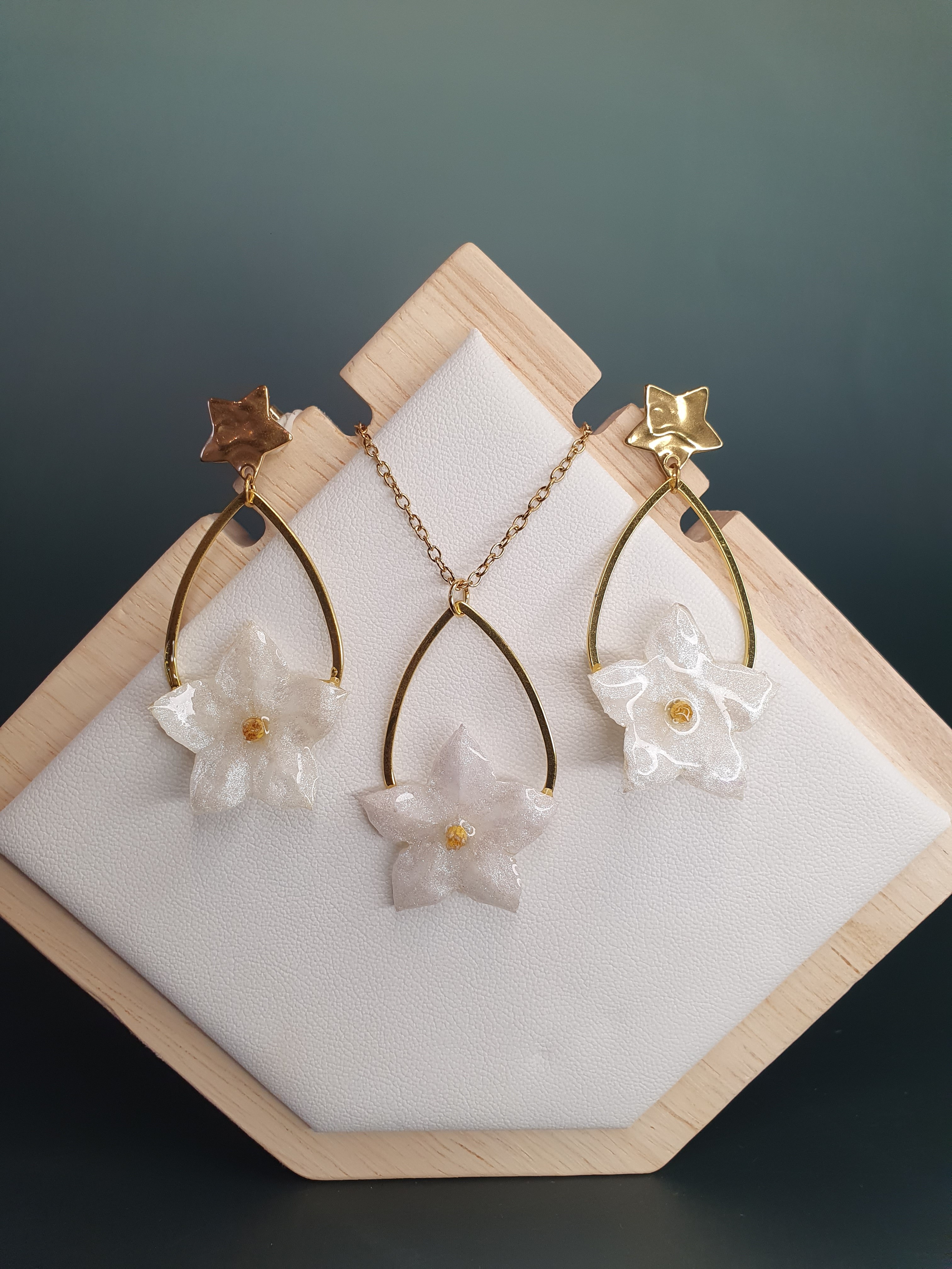 ✨ Parure – Fleurs de Morelle (Faux Jasmin) Blanche Nacrée