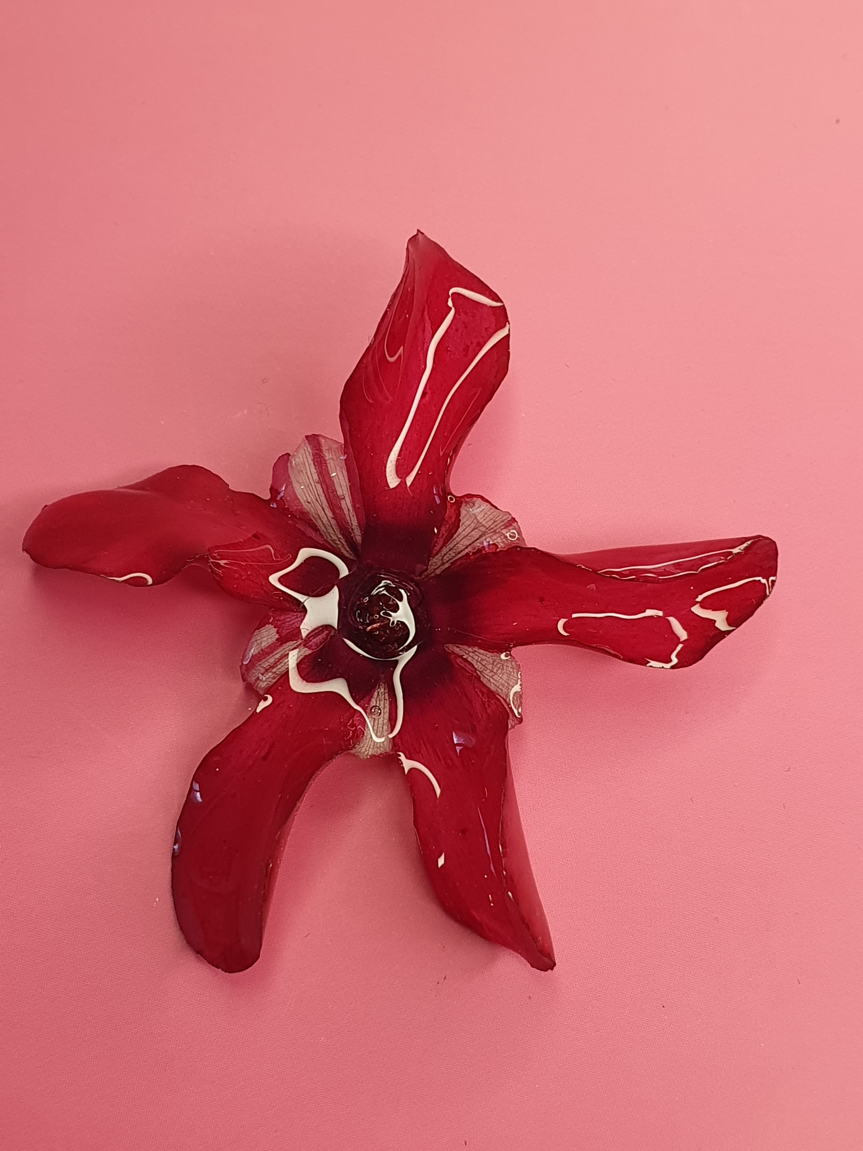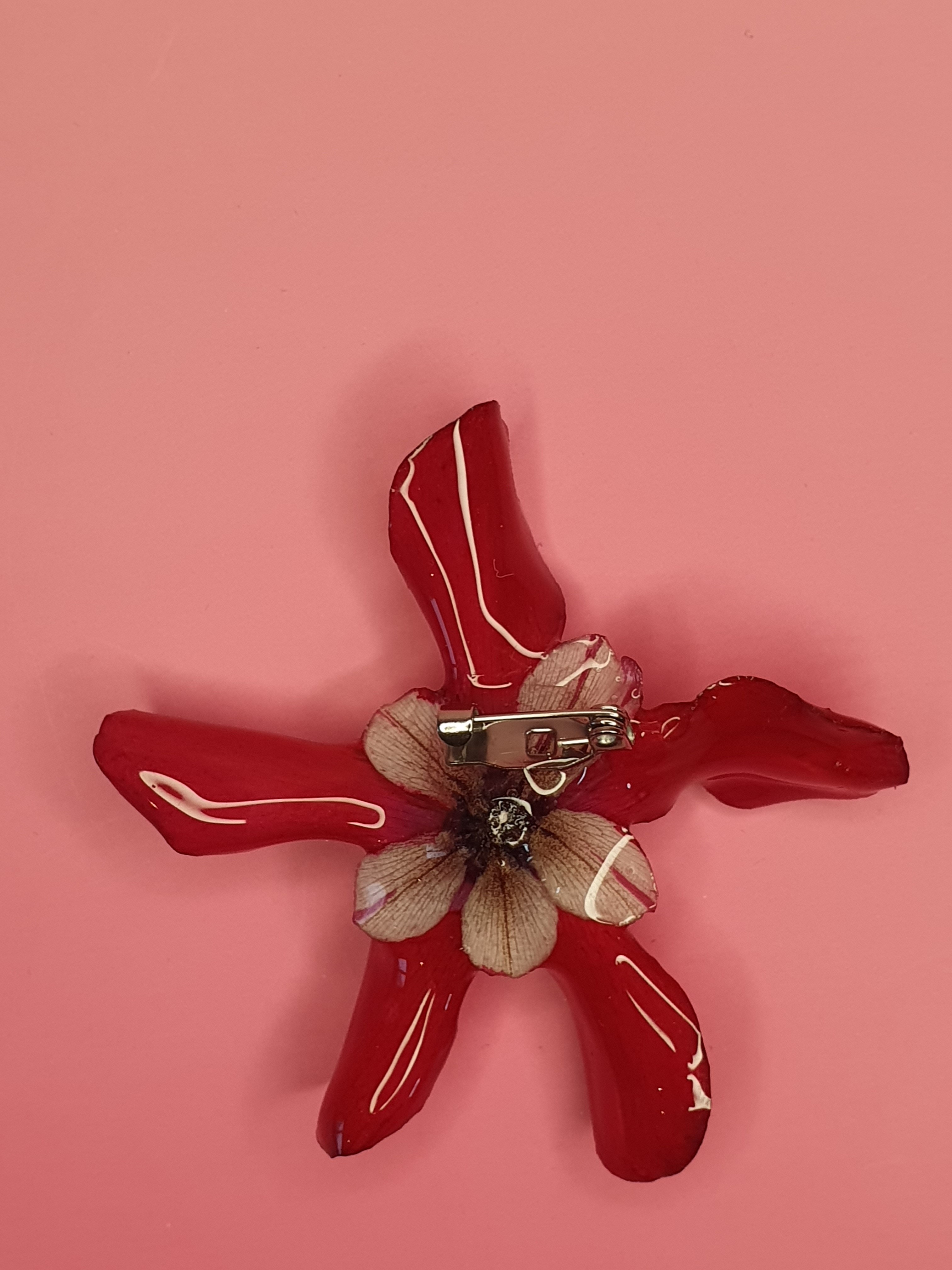Sublimez vos vestes, écharpes ou sacs avec cette broche Cyclamen rouge vif. Chaque pièce est une fleur naturelle figée dans la résine, capturant l’essence de la nature dans un bijou unique.