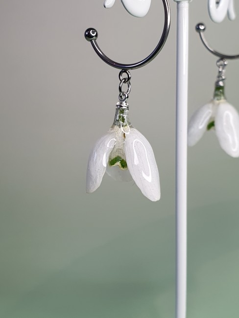 Ce joli perce-neige, aux formes douces et arrondies, semble suspendu dans le temps. Récolté et séché avec minutie, il est ensuite figé dans la résine pour préserver sa beauté naturelle.