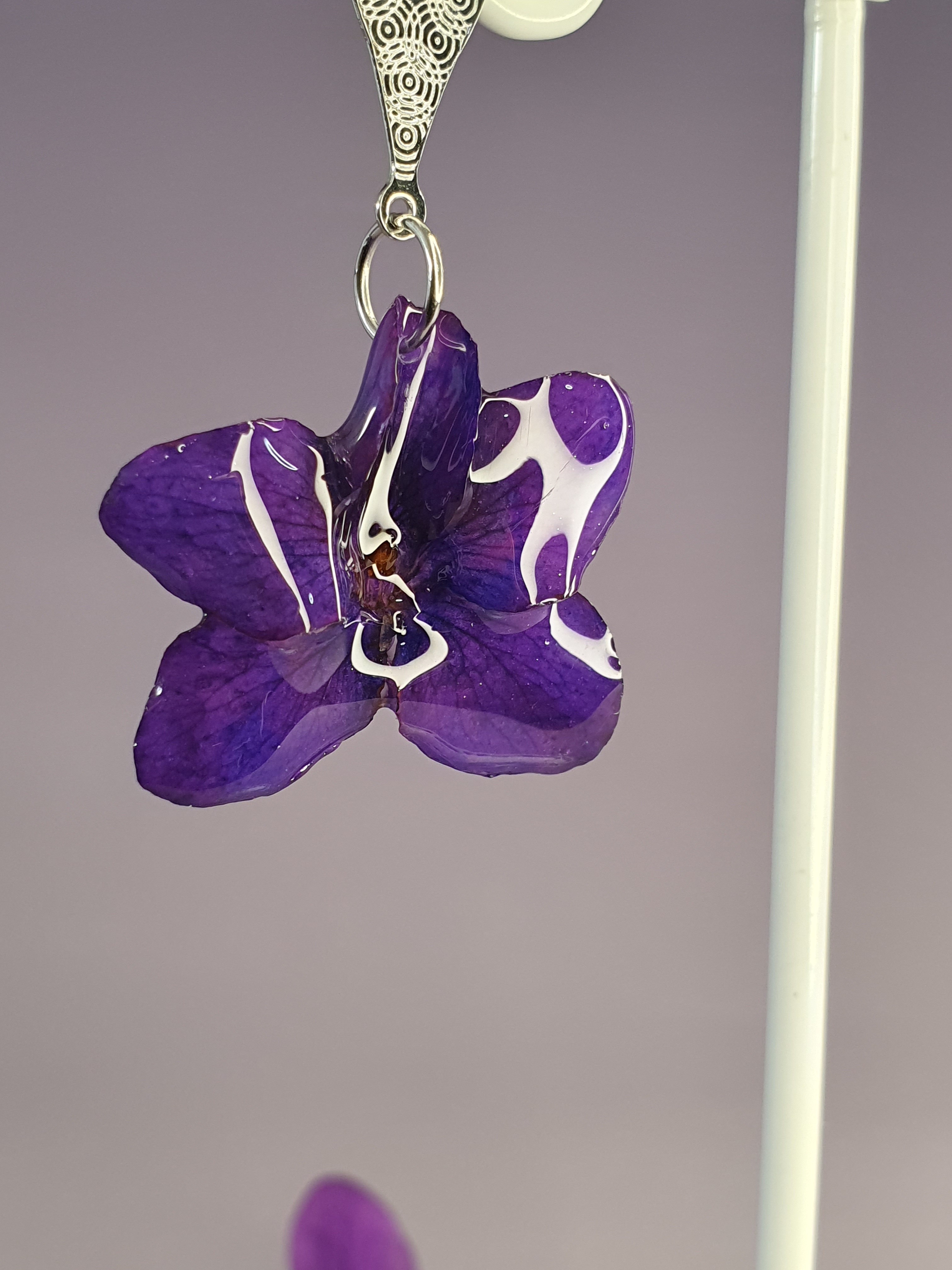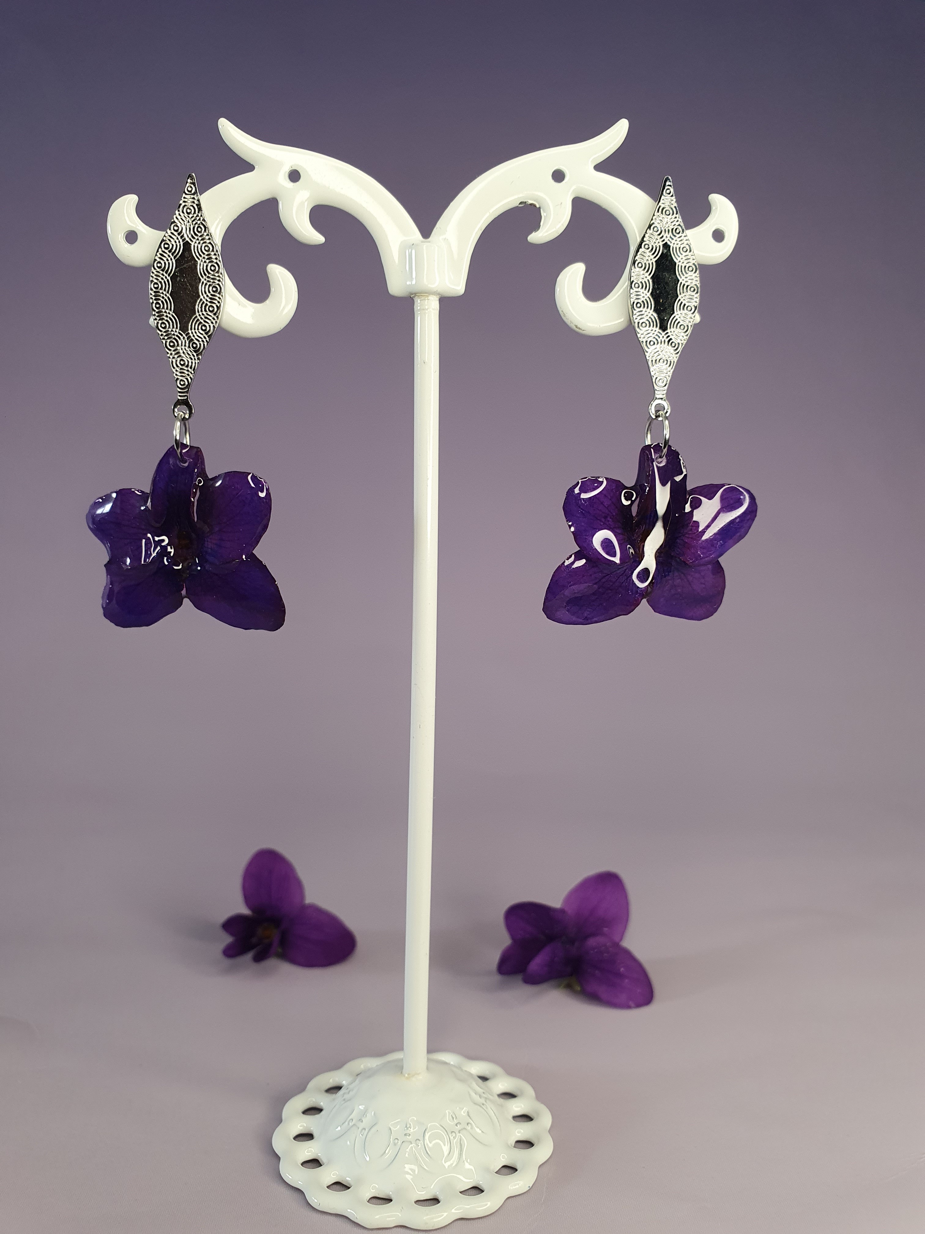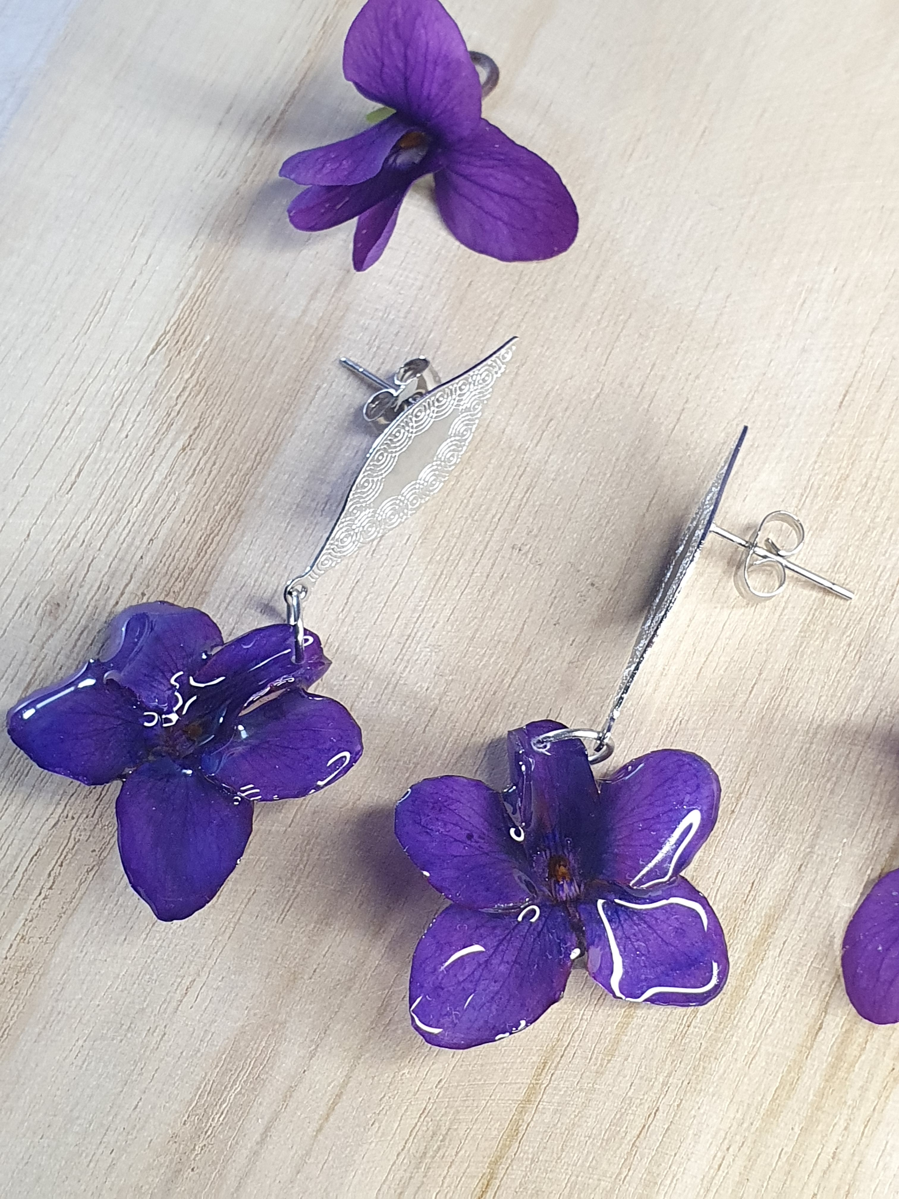 đż Boucles d’oreilles – Véritables Violettes odorantes figées dans la résine