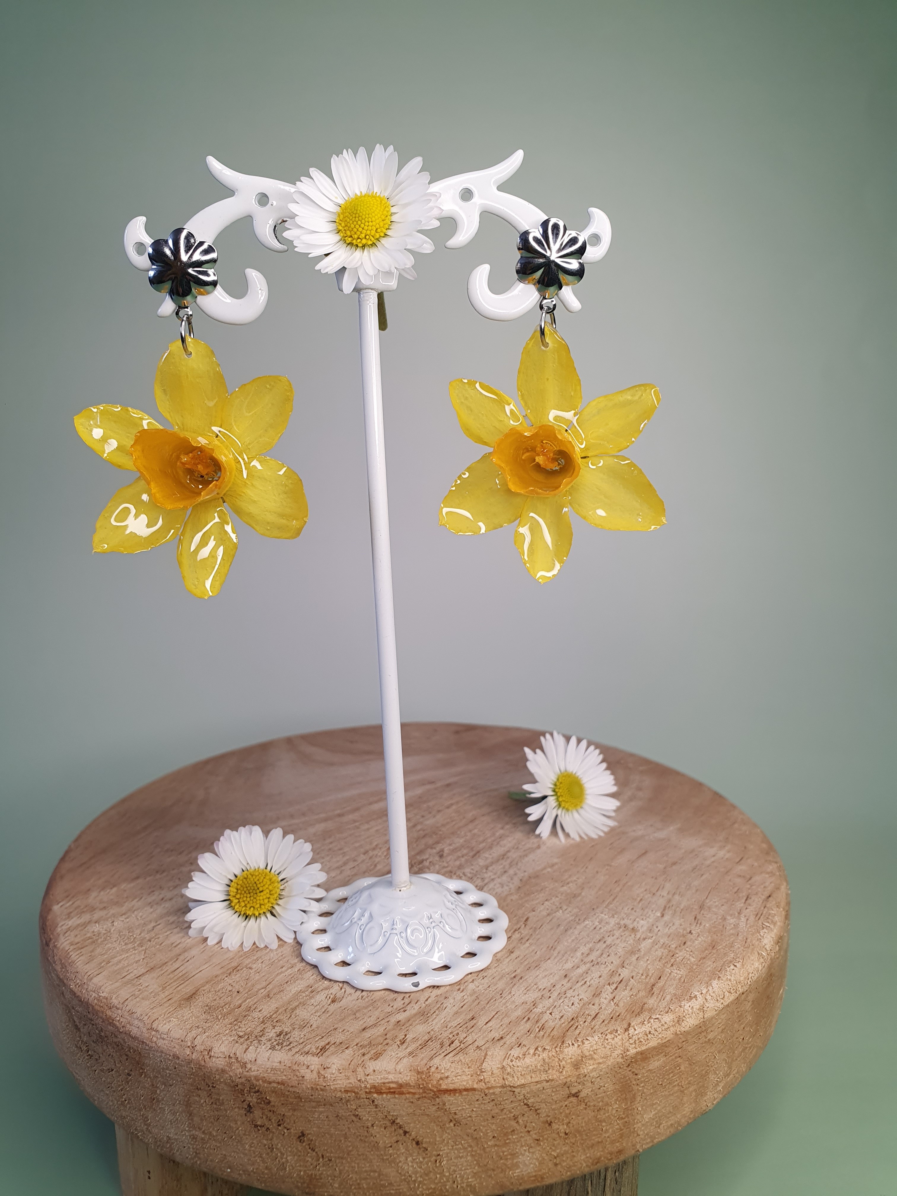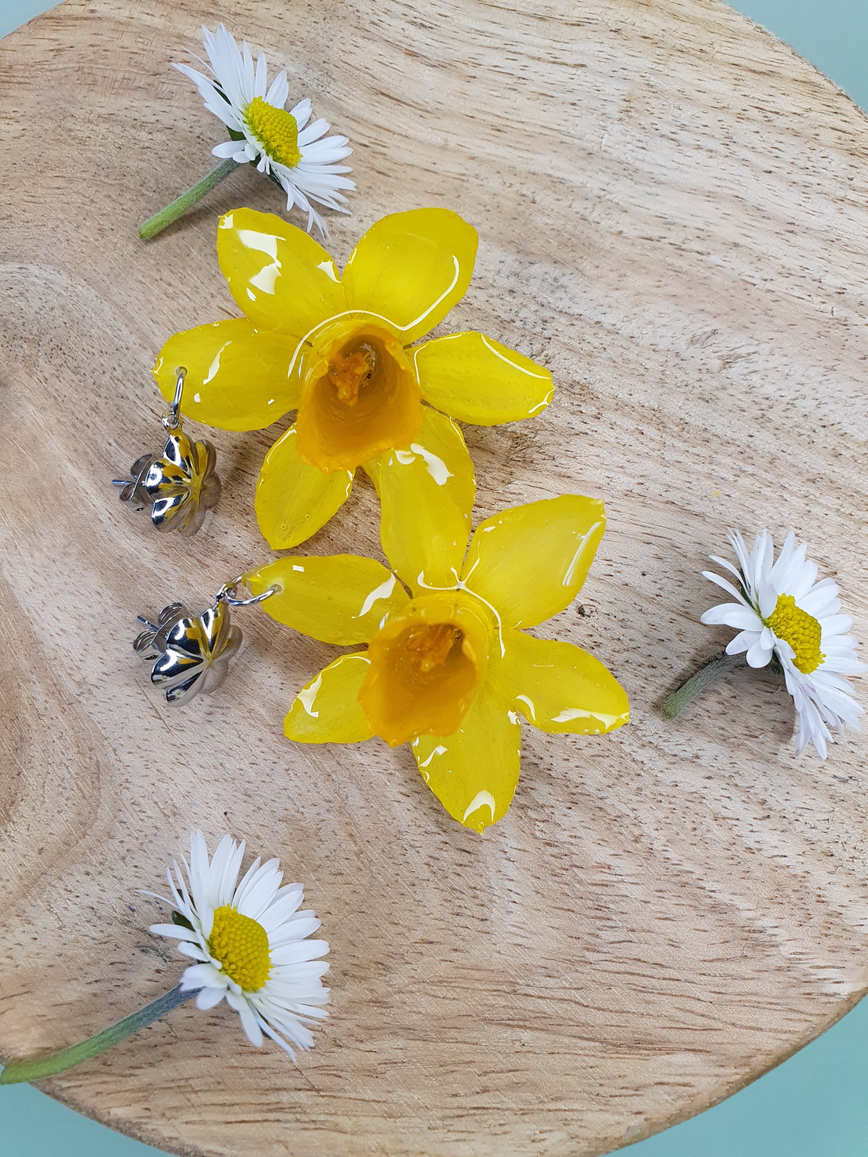 🌼 Boucles d’oreilles Jonquilles – Inox argenté
